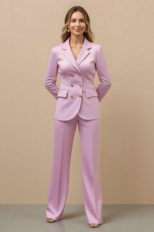 2 Piece Pink Satin Notched Lapel Double Breasted Women Business Suits