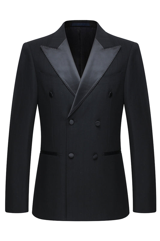 2 Piece Peak Lapel Double Breasted Black Men's Party Suits