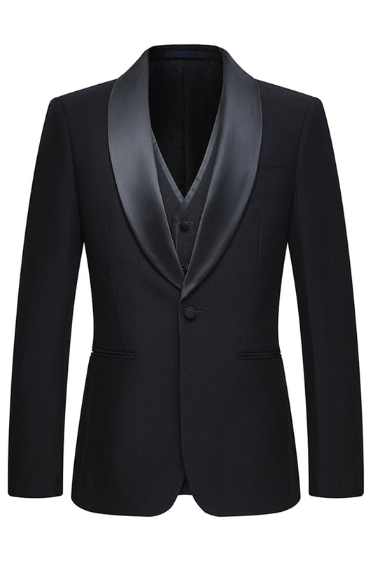 3 Piece Shawl Lapel One Button Black Men's Suits