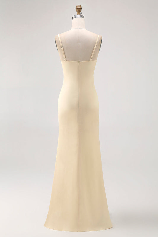 Daffodil Spaghetti Straps Satin Sheath Bridesmaid Dress