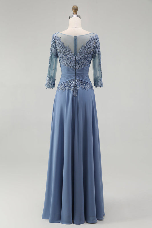 Dusty Blue Lace A Line Chiffon Mother of the Bride Dress