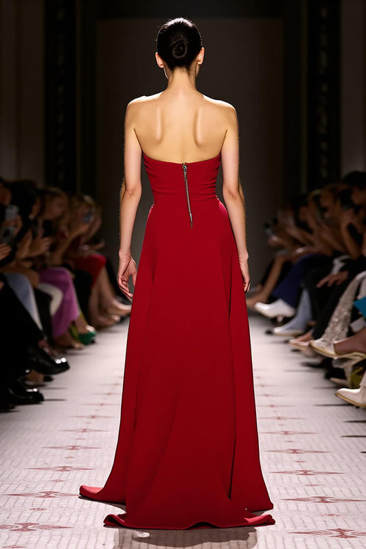 Simple Red Satin Strapless Mermaid Long Evening Dress