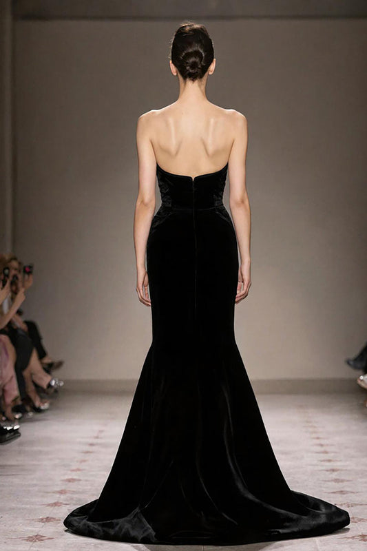Sparkly Strapless Black Mermaid Velvet Evening Dress