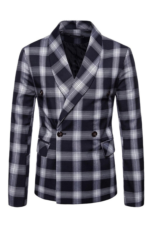• Navy Shawl Lapel Striped Men's Prom Blazer