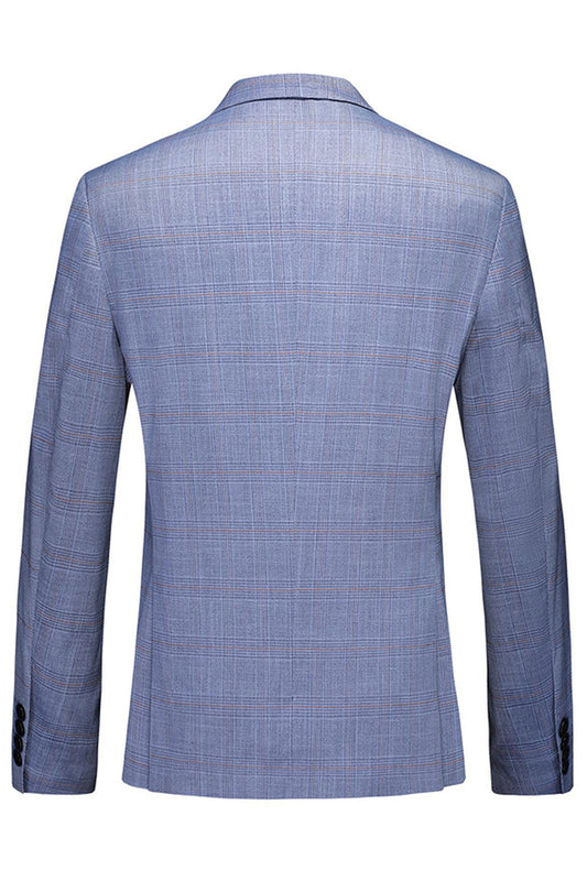 Blue Notched Lapel Slim Fit Plaid Men Suits