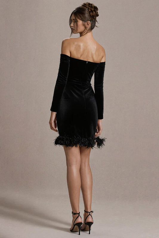 Black Velvet Off The Shoulder Tight Short Cocktail Dress with Sleeves