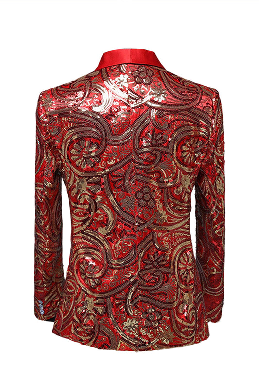 Sparkly Sequins Men's Red Shawl Lapel Prom Blazer