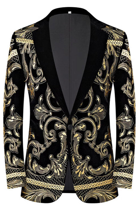• Men's Golden Jacquard 2 Piece Notched Lapel Prom Suits