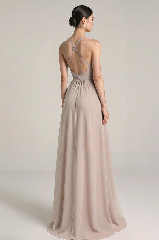 Simple Light Pink Long Prom Dress Spaghetti Straps A Line Formal Dress