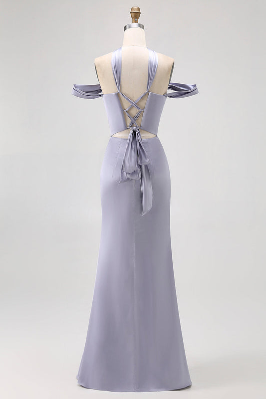 • Off The Shoulder Dusty Blue Mermaid Bridesmaid Dress
