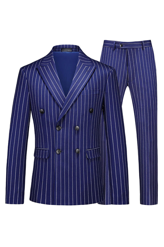 • Blue Peak Lapel Striped 2-piece Men Suits