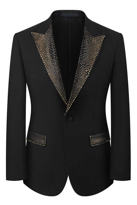 • 2 Piece Peak Lapel One Button Black Men's Suit with Beading