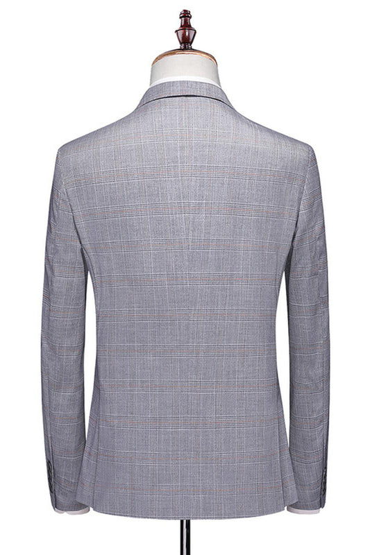 Men's Grey Plaid Peak Lapel 3 Pieces Prom Suits