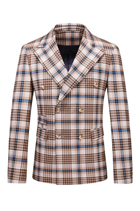 • Blue Plaid Peak Lapel 2 Pieces Prom Suits