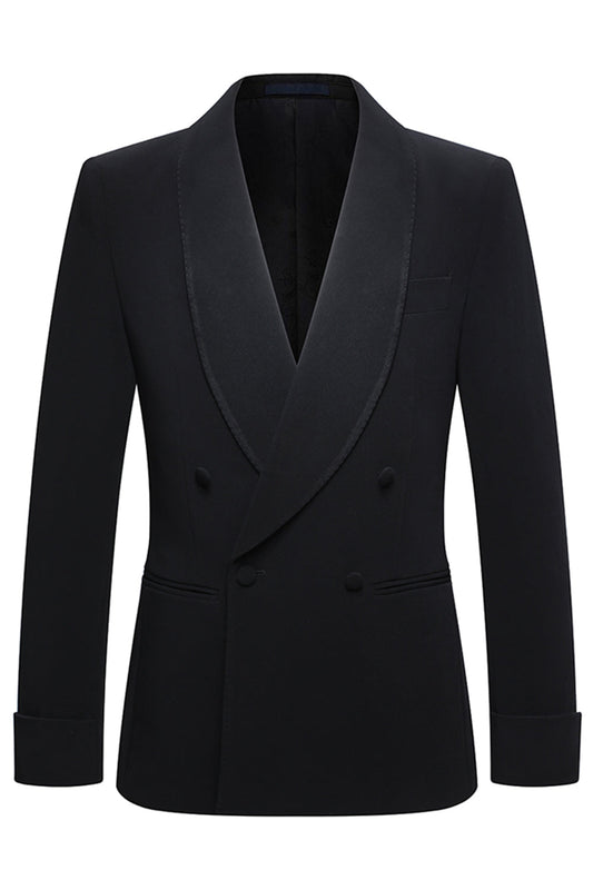 Double Breasted Black Shawl Lapel 2 Piece Men's Suits