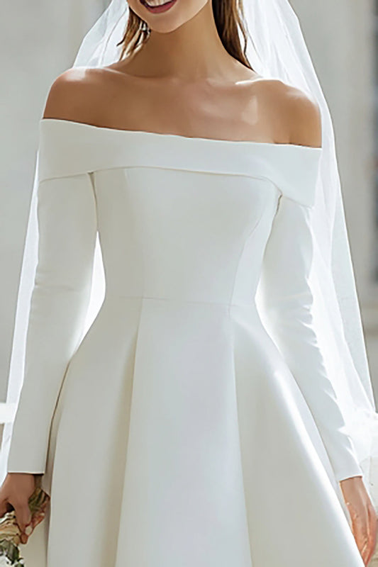 Ivory V-Neck A Line Long Sleeve Wedding Dress