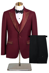 Black Peak Lapel Beaded 3-Piece Men Suits