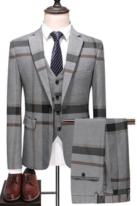 Dark Blue Notched Lapel Plaid 3-Piece Men Suits