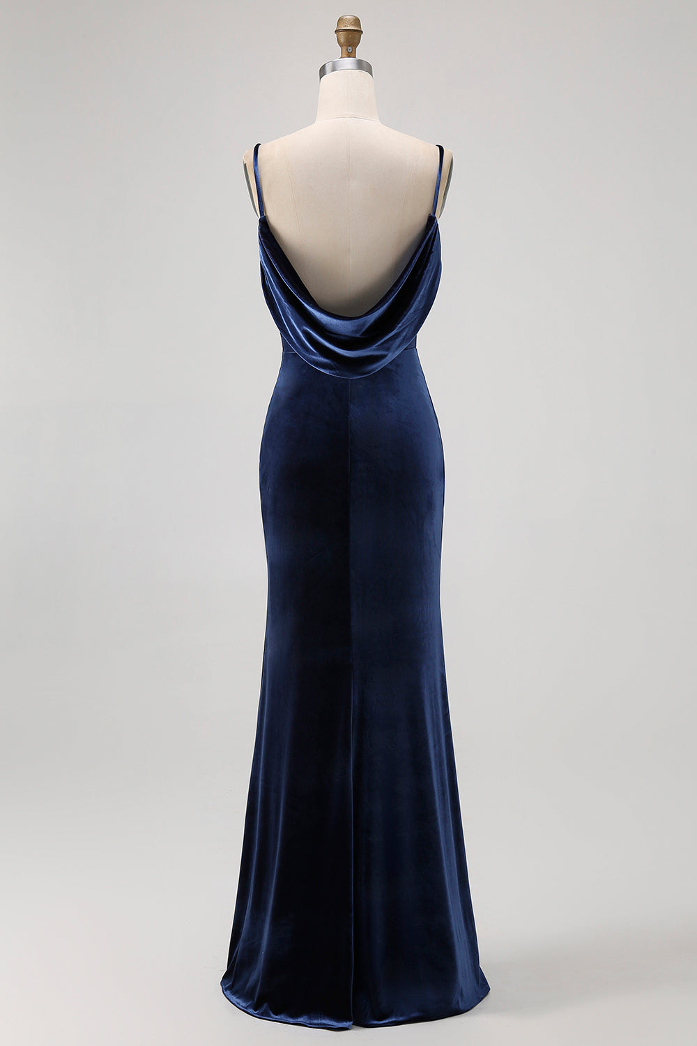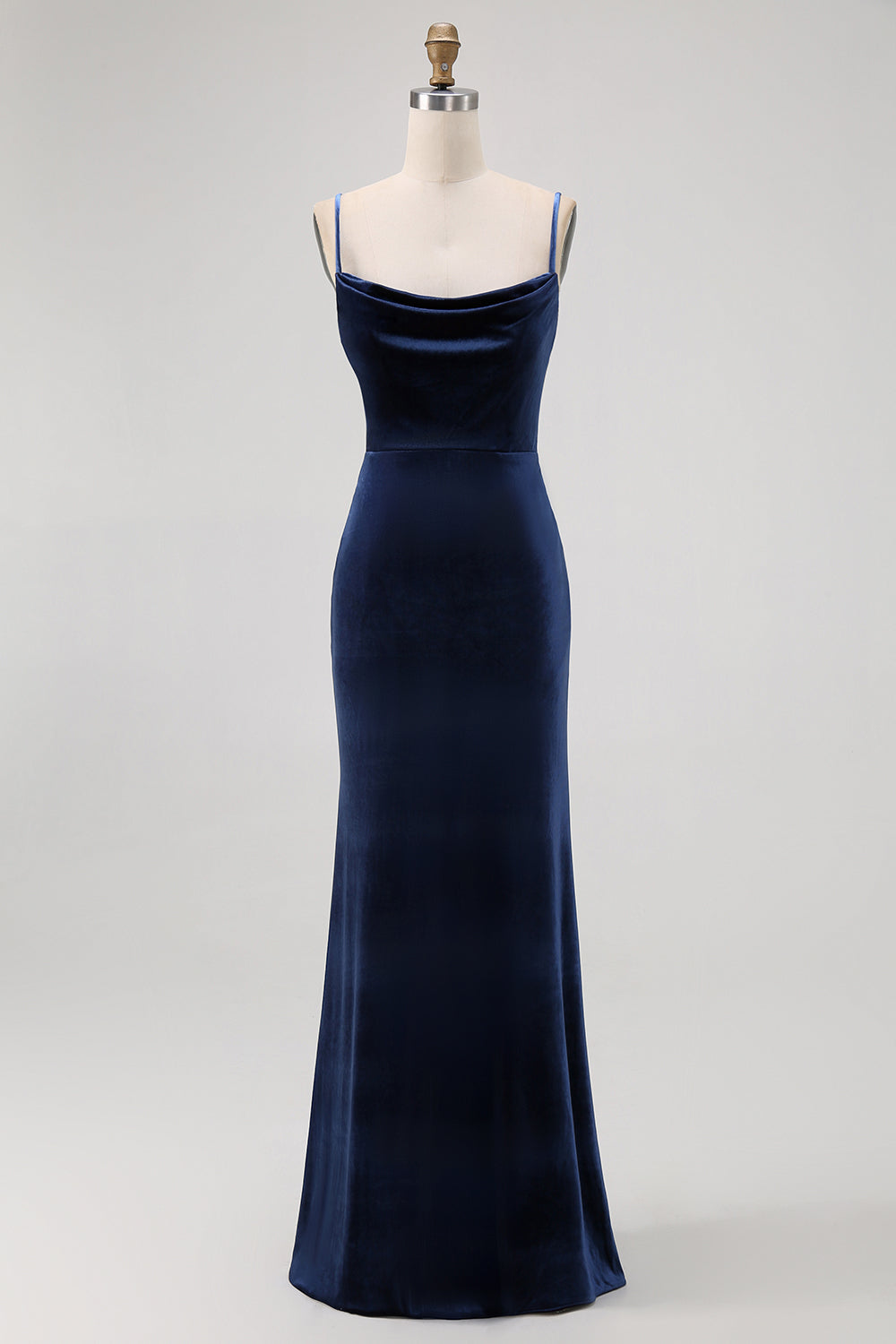 Dark Blue Spaghetti Straps Mermaid Bridesmaid Dress