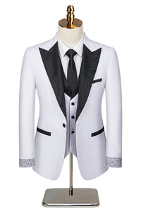 Men's Black Peaked Lapel Beaded 3 Pieces Wedding Suits