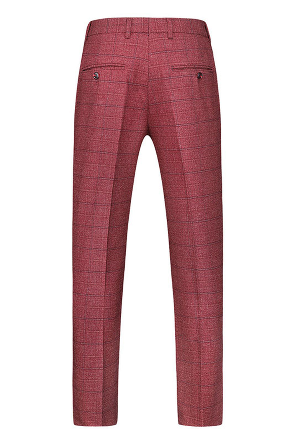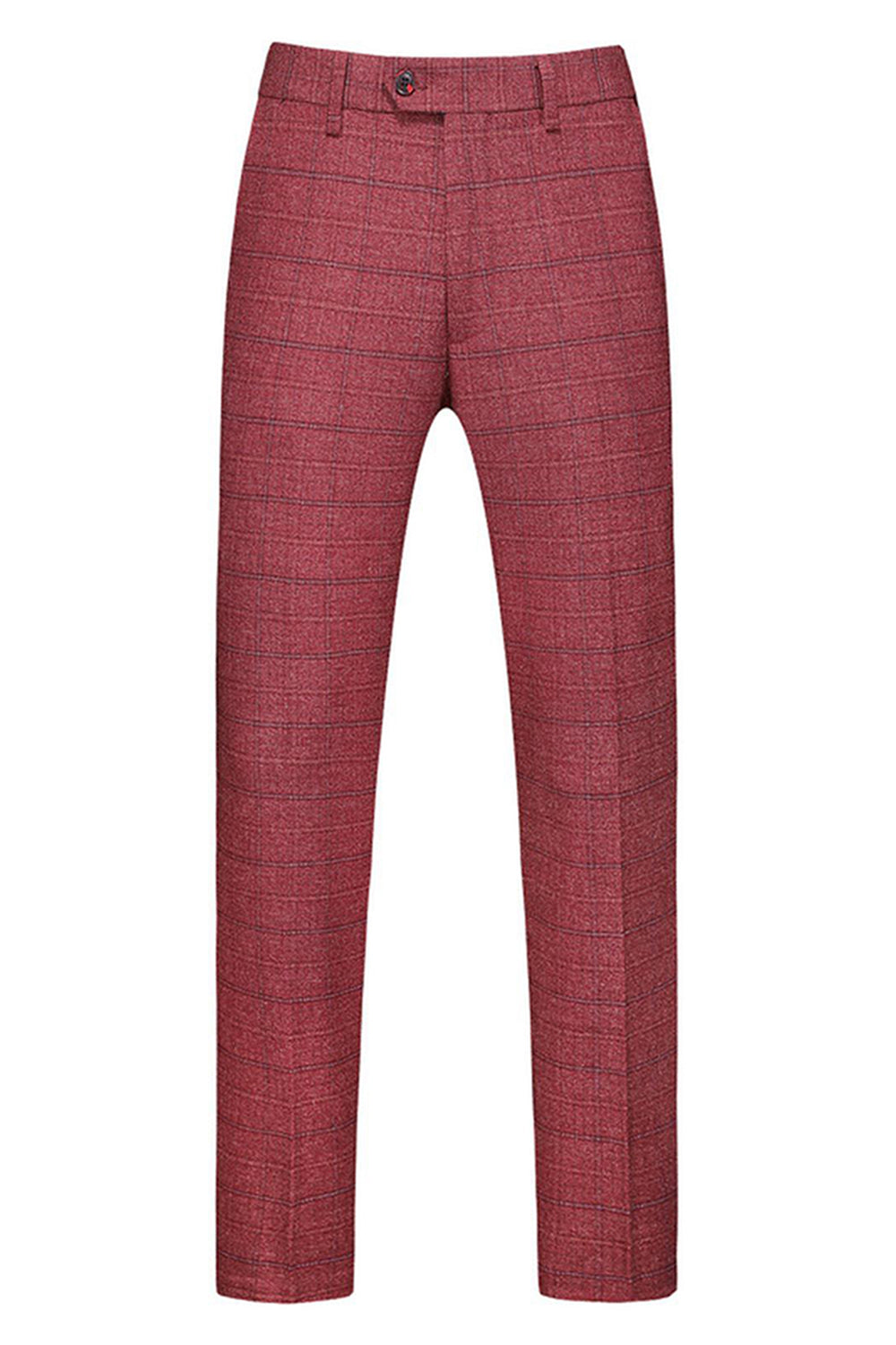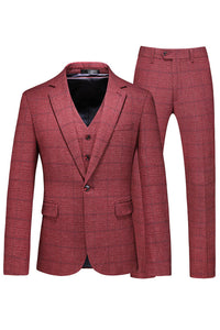 Men's Dark Blue Plaid Notched Lapel 3 Pieces Prom Suits