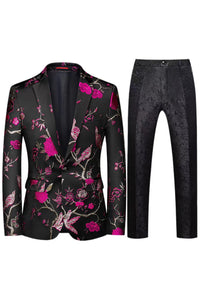 Notched Lapel Single Breasted Jacquard 2 Piece Purple Men's Prom Suits