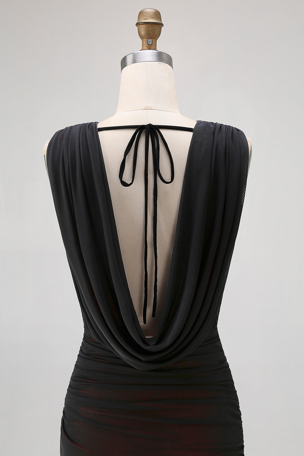 Sheath Cowl Neck Black Red Long Bridesmaid Dress with Slit