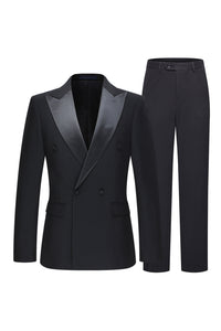 Slim Fit Black 2 Piece Double Breasted Peak Lapel Men's Suits
