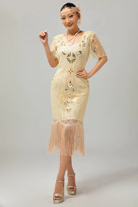 Sparkly Flapper Black Golden Sequin Bodycon Fringed 1920s Dress