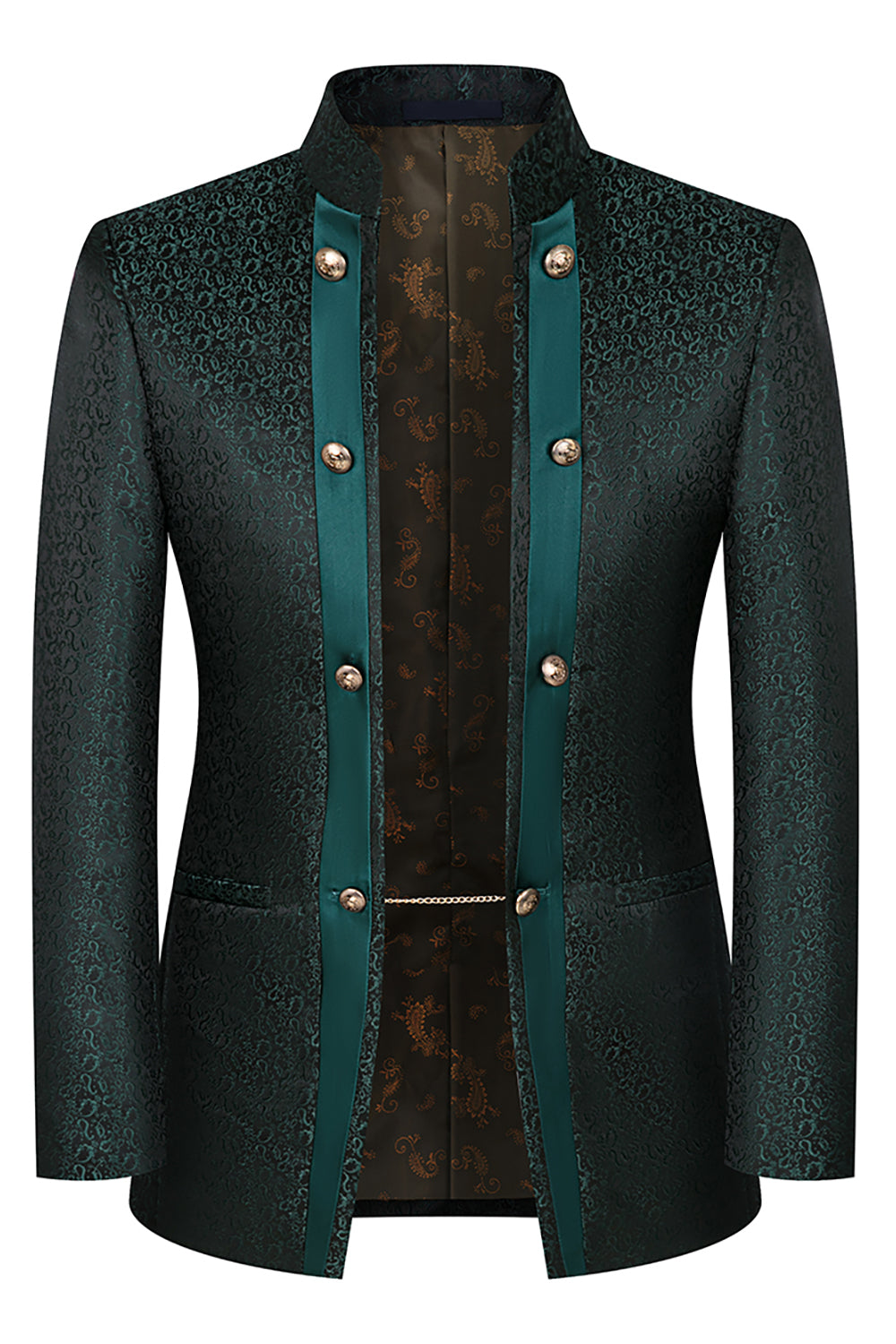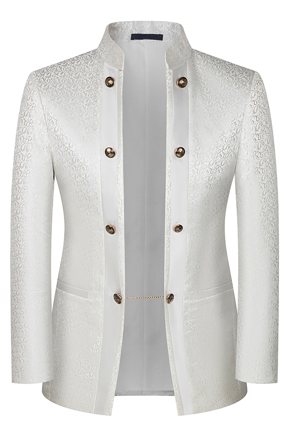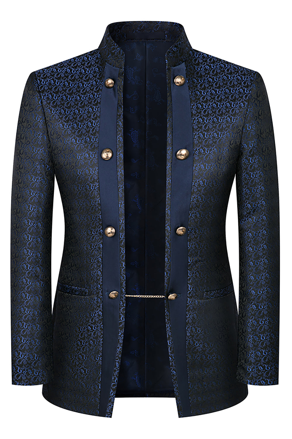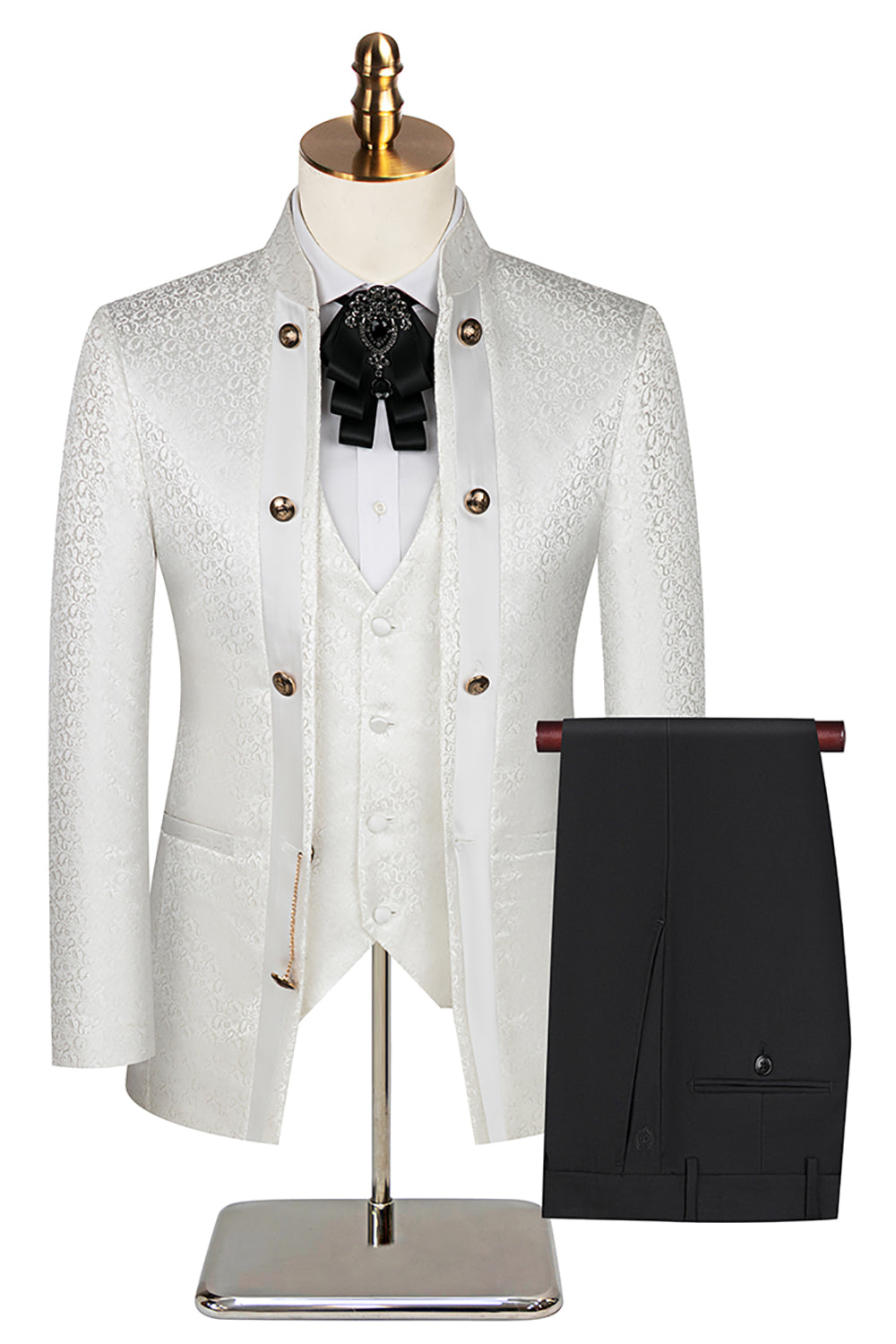 Stand Collar Jacquard Black 3 Pieces Men's Suits