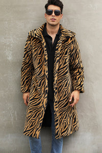 White and Black Straps Long Faux Fur Men's Winter Coat